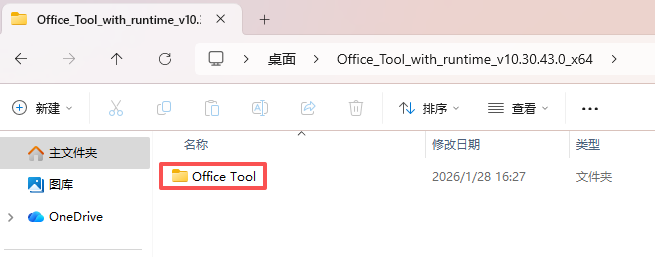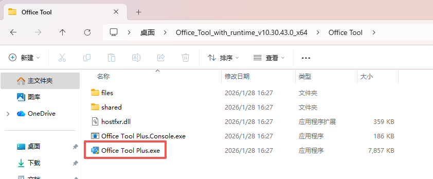 解压后,找到目录里的带蓝色图标的Office Tool Plus.exe,双击运行。