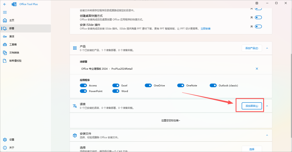 选择完毕后,在下方的“添加语言”中添加简体中文。方法和“添加产品”类似。