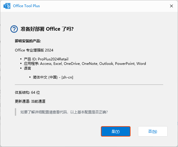 单击“开始部署”按钮,确认设置无误后,点击“是”,Office安装程序会自动启动。