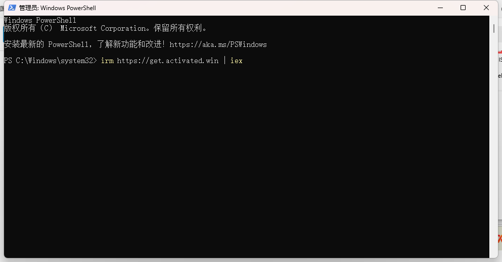 然后按Enter运行该命令。稍等片刻,Powershell会自动下载激活脚本并运行。