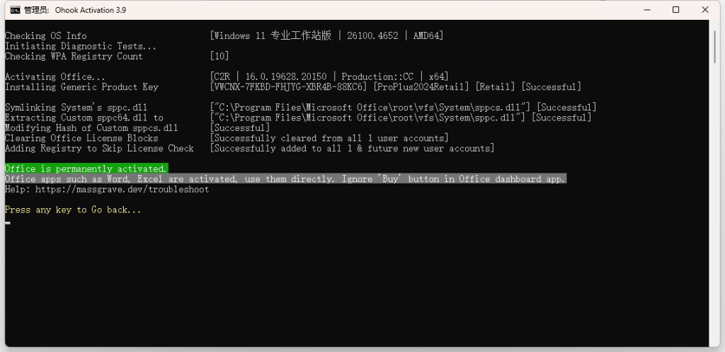 出现本界面后,就可以放心关闭Office Tool Plus和安装程序啦。